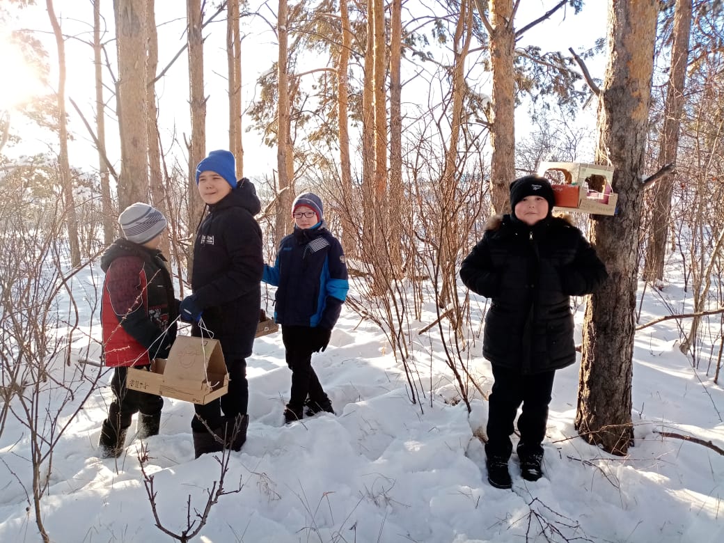 3 января для обучающихся школы учителями была проведена акция "Кормушка". Ребята установили для пернатых друзей кормушки в саду.
