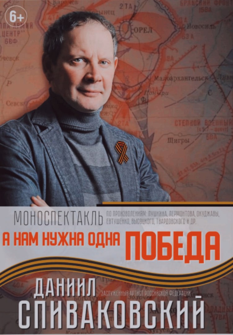 моноспектакль Заслуженного артиста РФ Даниила Спиваковского «А нам нужна одна ПОБЕДА», посвященная победе нашей страны в Великой Отечественной войне. Актёр словами великих писателей и поэтов рассказал о героизме русской армии, о величии русского солдата и патриотизме народа во все времена тяжелых сражений от Бородина до Берлина. В программе прозвучали песни и музыка знаменитых композиторов, посвящённые победам наших воинов.