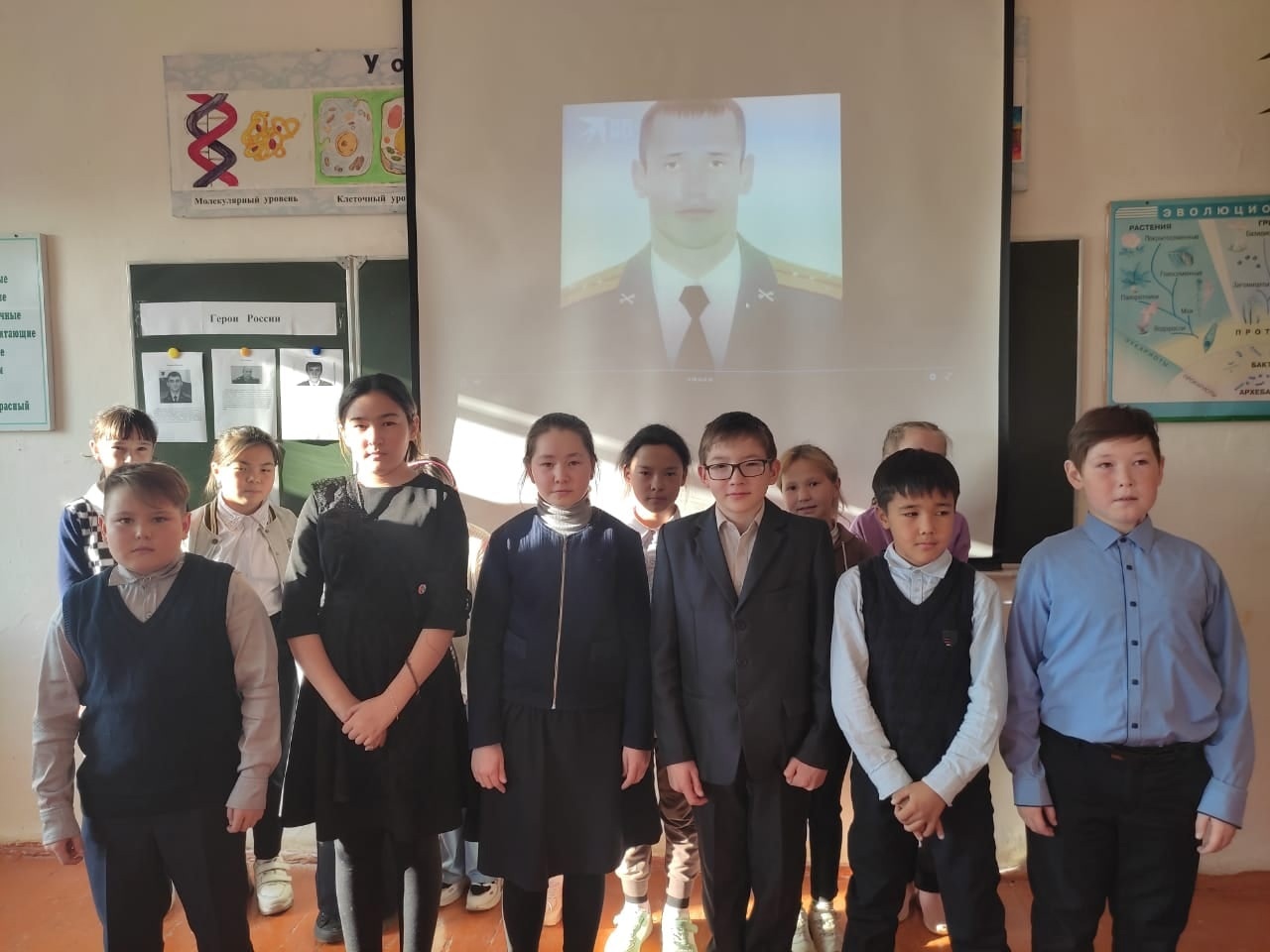 Сегодня в школе был проведен Урок мужества на тему "Герои нашего времени. Алексей Панкратов". Урок был посвящён Алексею Панкратову. За "мужество и героизм, проявленные при выполнении боевого задания",во время спецоперации на Украине, указом Президента РФ от 4 марта 2022 года командиру зенитного дивизиона капитану Алексею Панкратову присвоено звание Героя России. Так же посмотрели презентацию из фотографии погибших сотрудников МВД при исполнении служебных обязанностей.