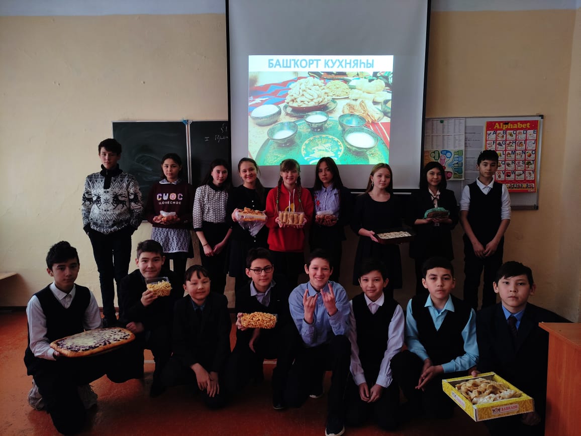 Сегодня в школе прошли мероприятия, посвященные этносубботе. Помимо того, что ученики старших классов писали диктант на родном языке, в школе проходили различные игры и уроки. Пятиклассники провели Шэжере байрамы, где они рассказывали о своей родословной, а шестиклассники устроили показ моды. Они показали наряды башкирских девушек и юношей. 7 класс же устроил праздник национальной кухни, они рассказывали о башкирских блюдах, делились рецептами, а в конце уностили друг друга сладостями. Также все желающие могли послушать учителя истории Шагиева Фанура Фанитовича, который всем рассказывал историю башкирского лука. А после маленькой лекции все они могли пострелять из него по мишени.