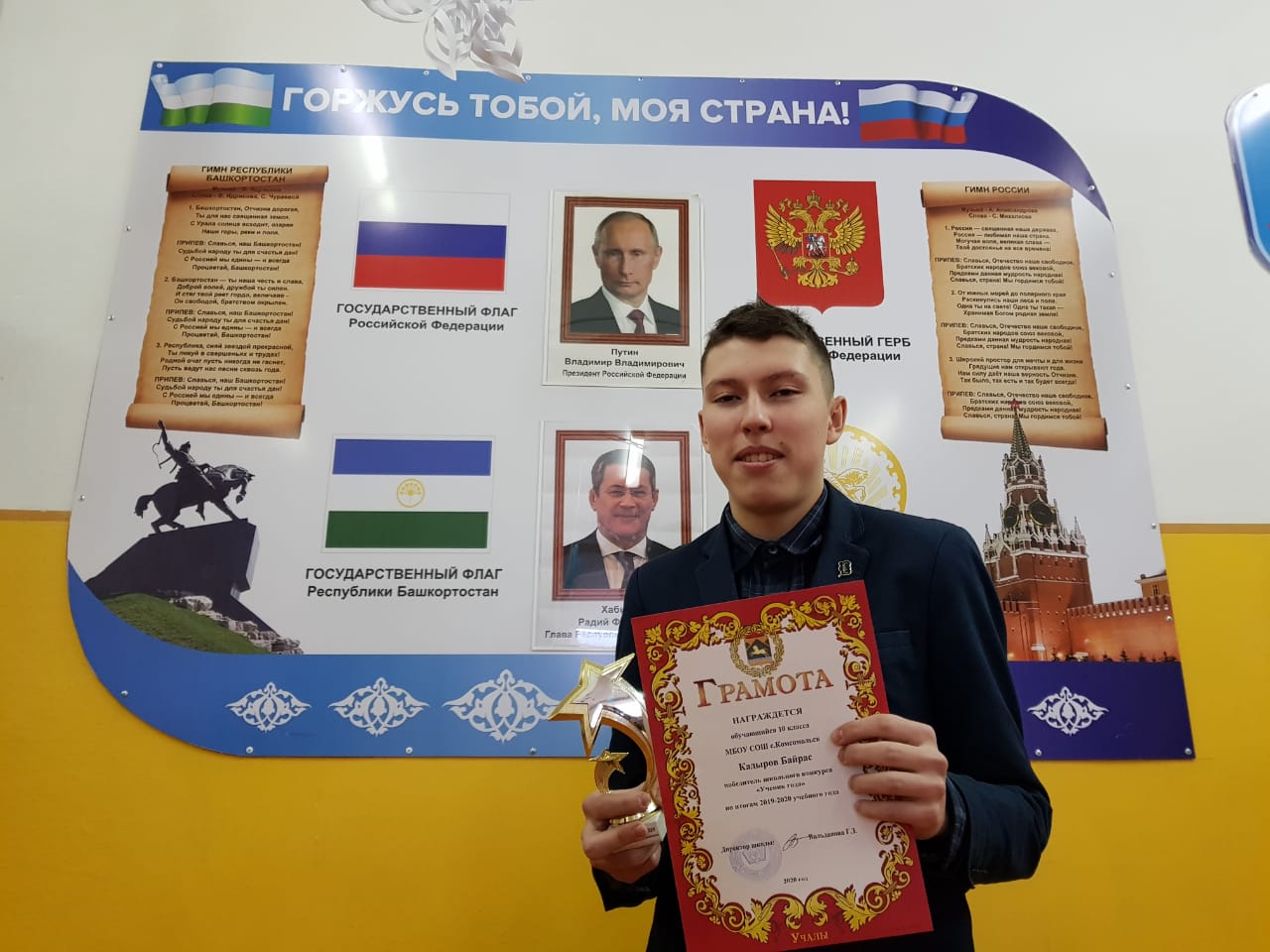 Из-за карантина весной мы не смогли отметить ученика нашей школы Кадырова Байраса, который удостоился высокой награды "Ученик года - 2020". Поэтому конец этого года отличный повод вручить ему законную награду.