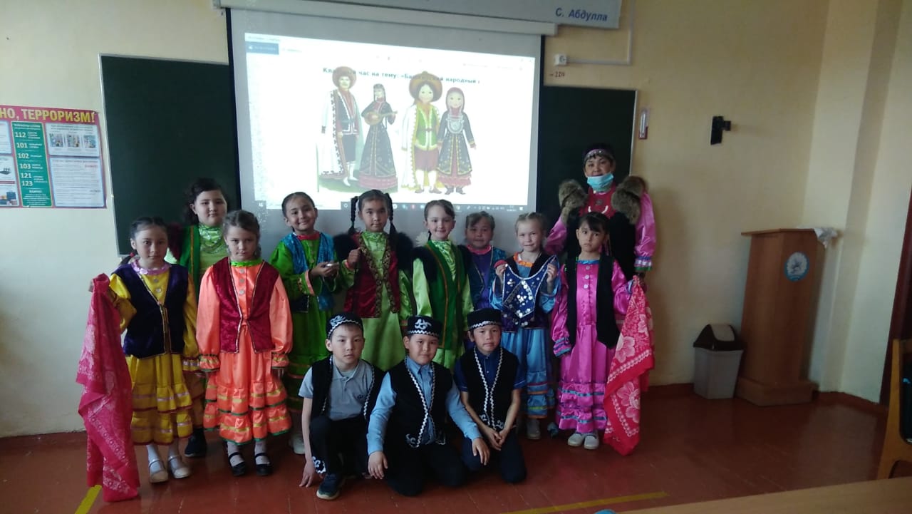 " Башкирский национальный костюм". Ребята все оделись в башкирские костюмы и станцевали башкирский танец