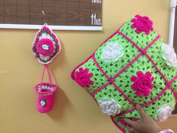 В этот день в гости была приглашены рукодельница нашего села Халиуллина Мадина Минлигаязовна. Она показала ученикам свои работы, а с желающие могли взять пару уроков по рукоделию.